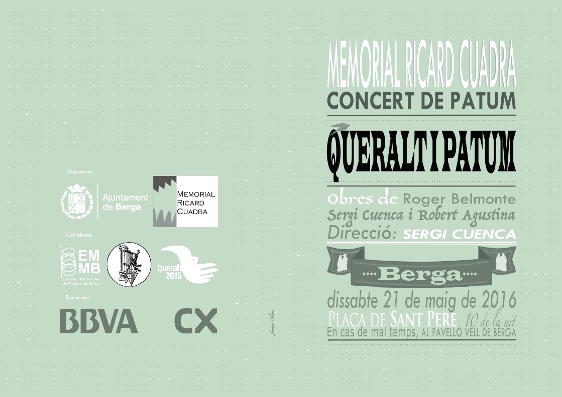 El Memorial Ricard Cuadra torna a oferir el Concert de Patum per 19è any consecutiu. Serà a Berga el dissabte 21 de maig, a les 10 de la nit, a la Plaça de Sant Pere. Els assajos van començar el 24 d'abril, sota la direcció de Sergi